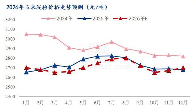 展望2026年,玉米淀粉市场将步入供应主导的调整周期。年内预计有新增产能持续释放,而需求端虽有增量预期但整体增速难以匹配供应放量步伐,市场将呈现“供增需缓”的宽松格局。在原料玉米价格波动有限、成本支撑相对平稳的背景下,供需关系的演变将成为主导价格走向的核心逻辑。